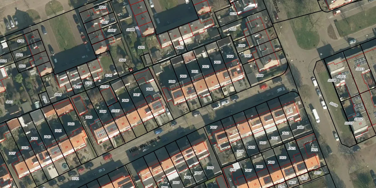 Hadewychstraat 10 is gelegen op kadastraal perceel VUG00B7650. Deze kadastrale aanduiding is uniek en wordt gebruikt door het Kadaster om eigendomsrechten en andere zakelijke rechten vast te leggen. Het perceel maakt onderdeel uit van de kadastrale gemeente Vught.