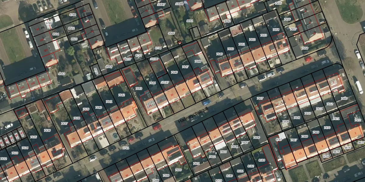 Het perceel waarop Hadewychstraat 18 staat heeft een oppervlakte van 216 m². Dit is een middelgroot perceel. De perceeloppervlakte wordt geregistreerd door het Kadaster. Gedetailleerde informatie over de maten van dit perceel kunt u vinden in het rapport Kadastrale kaart met maatvoering van Hadewychstraat 18.