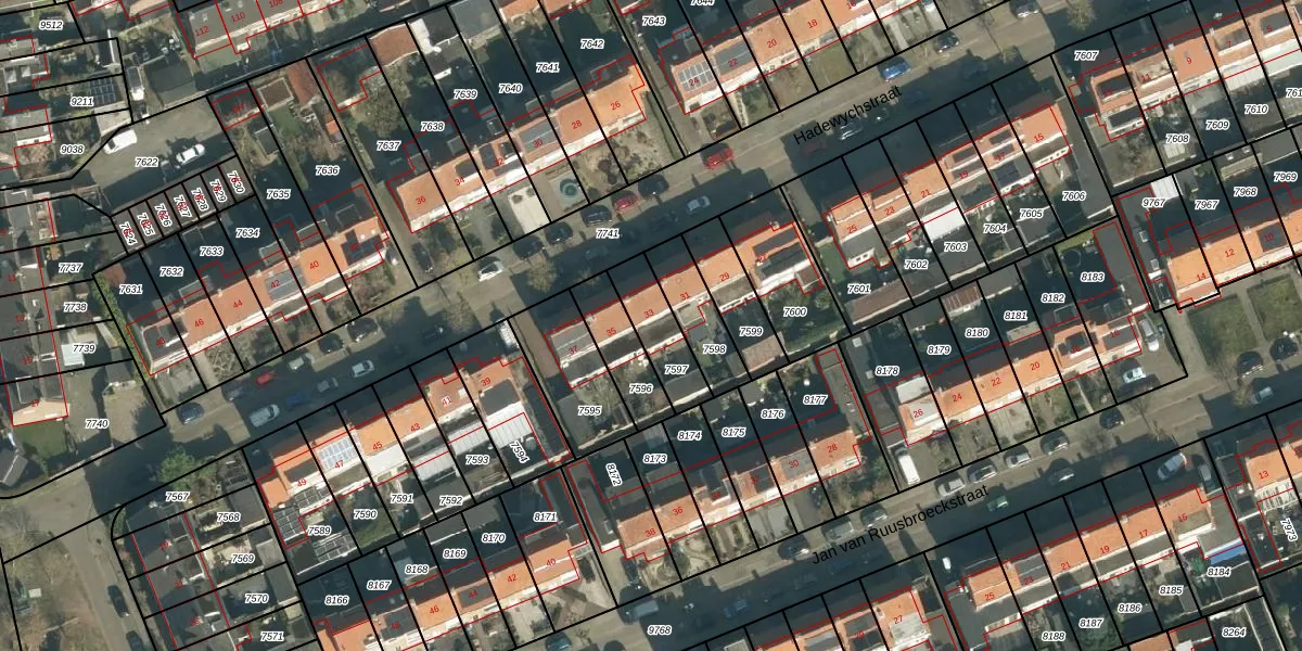 Het perceel waarop Hadewychstraat 33 staat heeft een oppervlakte van 159 m². Dit is een middelgroot perceel. De perceeloppervlakte wordt geregistreerd door het Kadaster. Gedetailleerde informatie over de maten van dit perceel kunt u vinden in het rapport Kadastrale kaart met maatvoering van Hadewychstraat 33.