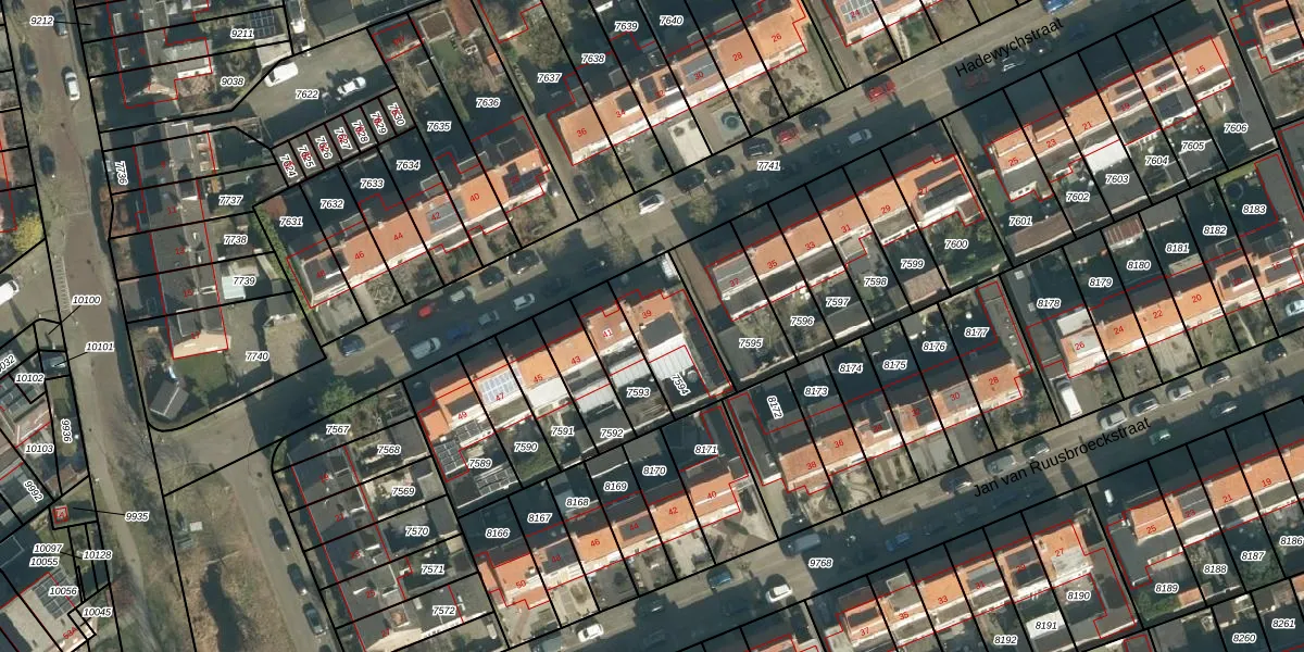 Het perceel waarop Hadewychstraat 39 staat heeft een oppervlakte van 251 m². Dit is een middelgroot perceel. De perceeloppervlakte wordt geregistreerd door het Kadaster. Gedetailleerde informatie over de maten van dit perceel kunt u vinden in het rapport Kadastrale kaart met maatvoering van Hadewychstraat 39.