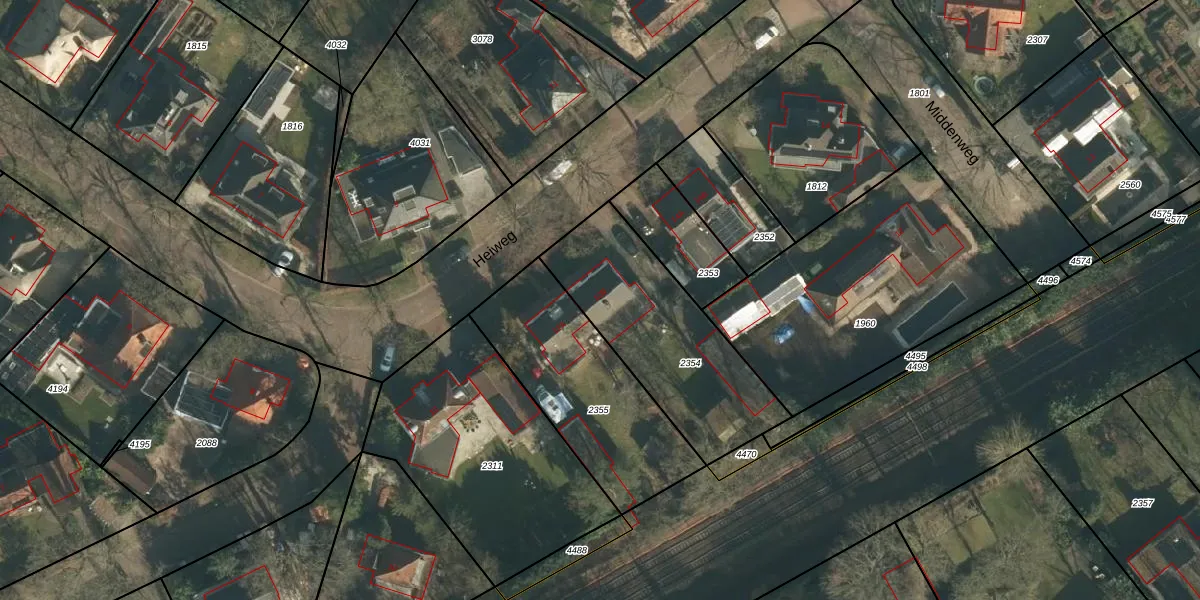Het perceel waarop Heiweg 12-B staat heeft een oppervlakte van 725 m². Dit is een groot perceel. De perceeloppervlakte wordt geregistreerd door het Kadaster. Gedetailleerde informatie over de maten van dit perceel kunt u vinden in het rapport Kadastrale kaart met maatvoering van Heiweg 12-B.