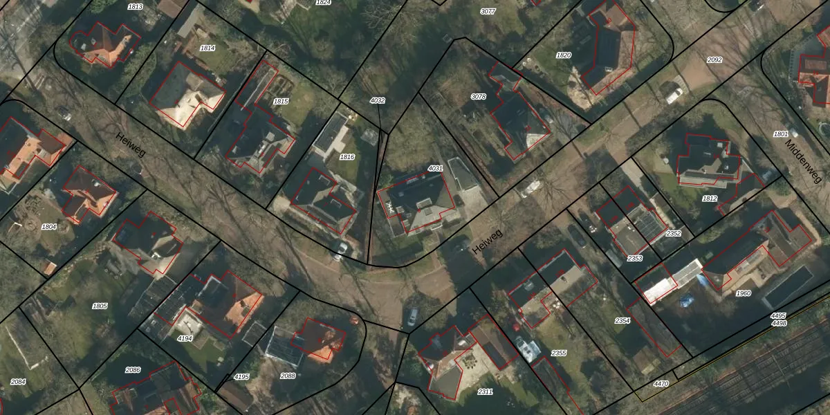 Heiweg 9 is gelegen op kadastraal perceel VUG00E4031. Deze kadastrale aanduiding is uniek en wordt gebruikt door het Kadaster om eigendomsrechten en andere zakelijke rechten vast te leggen. Het perceel maakt onderdeel uit van de kadastrale gemeente Vught.