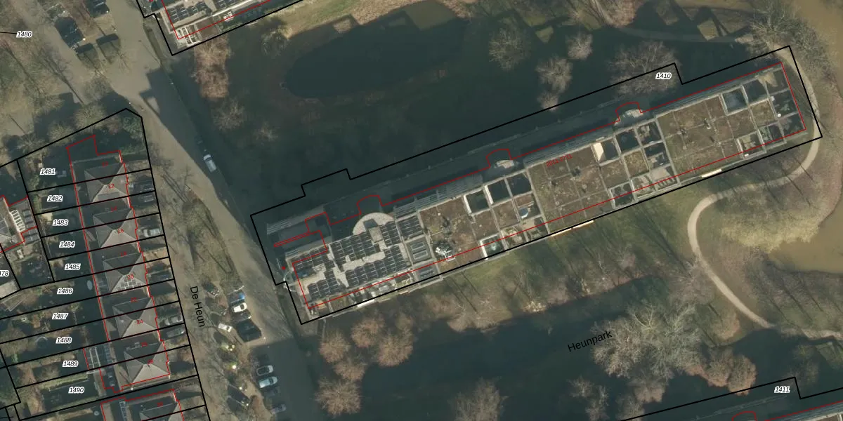 Het perceel waarop Heunpark 2111 staat heeft een oppervlakte van 3654 m². Dit is een zeer groot perceel. De perceeloppervlakte wordt geregistreerd door het Kadaster. Gedetailleerde informatie over de maten van dit perceel kunt u vinden in het rapport Kadastrale kaart met maatvoering van Heunpark 2111.