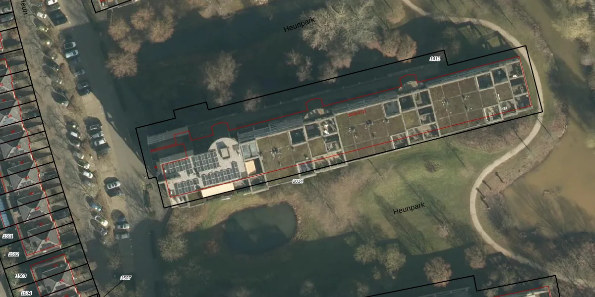 Het perceel waarop Heunpark 3223 staat heeft een oppervlakte van 3654 m². Dit is een zeer groot perceel. De perceeloppervlakte wordt geregistreerd door het Kadaster. Gedetailleerde informatie over de maten van dit perceel kunt u vinden in het rapport Kadastrale kaart met maatvoering van Heunpark 3223.