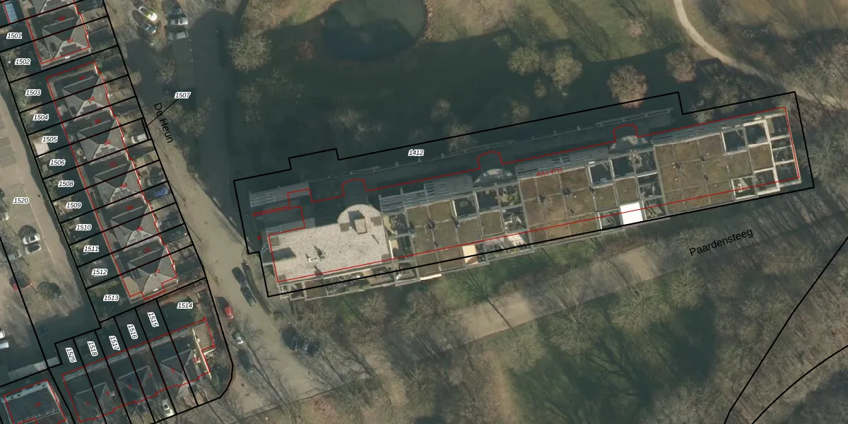 Het perceel waarop Heunpark 4112 staat heeft een oppervlakte van 3654 m². Dit is een zeer groot perceel. De perceeloppervlakte wordt geregistreerd door het Kadaster. Gedetailleerde informatie over de maten van dit perceel kunt u vinden in het rapport Kadastrale kaart met maatvoering van Heunpark 4112.