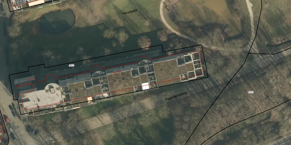 Het perceel waarop Heunpark 4313 staat heeft een oppervlakte van 3654 m². Dit is een zeer groot perceel. De perceeloppervlakte wordt geregistreerd door het Kadaster. Gedetailleerde informatie over de maten van dit perceel kunt u vinden in het rapport Kadastrale kaart met maatvoering van Heunpark 4313.