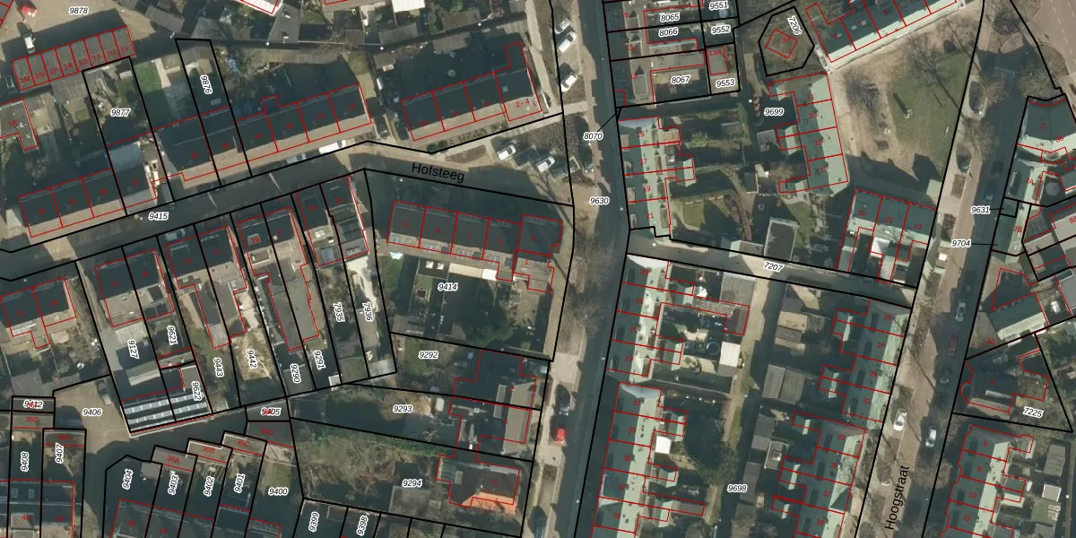 Het perceel waarop Hofsteeg 3 staat heeft een oppervlakte van 1030 m². Dit is een zeer groot perceel. De perceeloppervlakte wordt geregistreerd door het Kadaster. Gedetailleerde informatie over de maten van dit perceel kunt u vinden in het rapport Kadastrale kaart met maatvoering van Hofsteeg 3.
