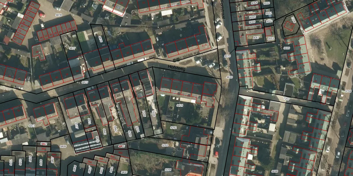 Hofsteeg 9 is gelegen op kadastraal perceel VUG00B9414. Deze kadastrale aanduiding is uniek en wordt gebruikt door het Kadaster om eigendomsrechten en andere zakelijke rechten vast te leggen. Het perceel maakt onderdeel uit van de kadastrale gemeente Vught.