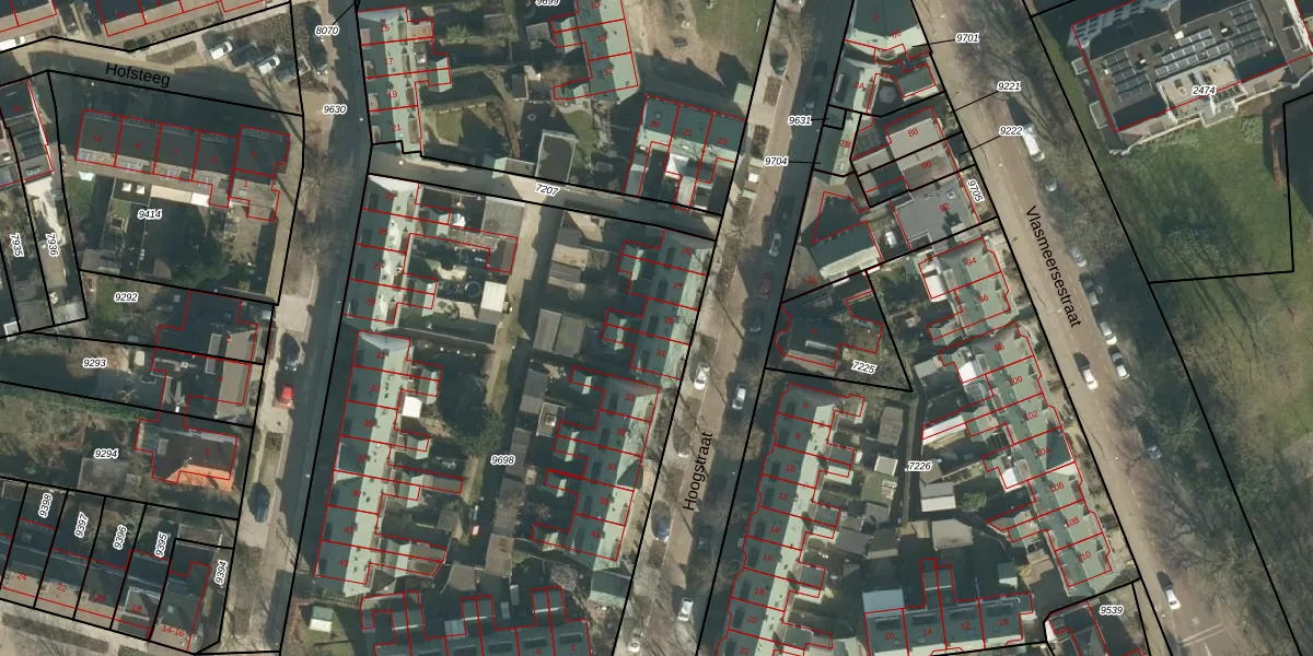 Het perceel waarop Hoogstraat 29 staat heeft een oppervlakte van 3868 m². Dit is een zeer groot perceel. De perceeloppervlakte wordt geregistreerd door het Kadaster. Gedetailleerde informatie over de maten van dit perceel kunt u vinden in het rapport Kadastrale kaart met maatvoering van Hoogstraat 29.