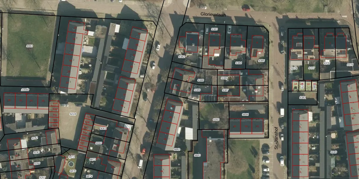 Gebruik de zoekbalk of klik op een perceel voor informatie over de adressen binnen dit perceel.