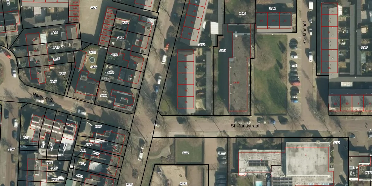 Het adres ligt op het perceel VUG00-B-9842, dat zich in de kadastrale gemeente Vught bevindt. Het perceel is 1646 m² groot. Dat is kleiner dan de gemiddelde perceeloppervlakte in Vught, dat op 2686,28 m² ligt. Het grootste perceel in de kadastrale gemeente is 65,7 ha. Het kleinste perceel heeft een oppervlakte van 0 m². Op het perceel zijn 9 adressen aanwezig. De huidige grenzen van het perceel zijn digitaal in de Basisregistratie Kadaster (BRK) geregistreerd op 31-05-2010.