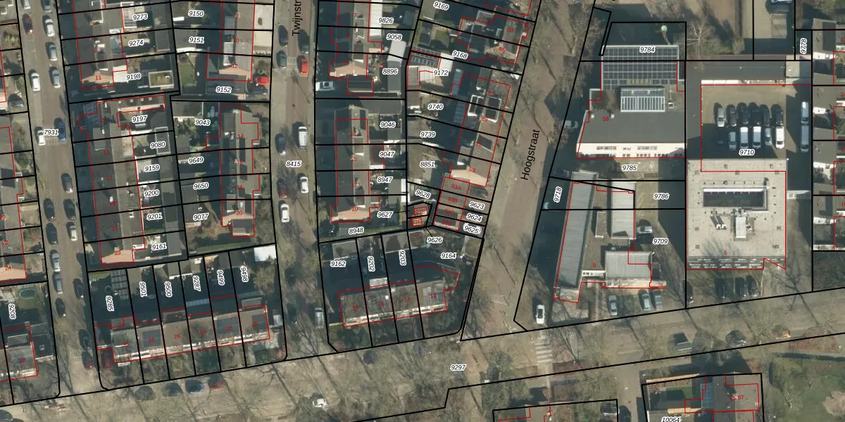 Hoogstraat 93-E is gelegen op kadastraal perceel VUG00B9627. Deze kadastrale aanduiding is uniek en wordt gebruikt door het Kadaster om eigendomsrechten en andere zakelijke rechten vast te leggen. Het perceel maakt onderdeel uit van de kadastrale gemeente Vught.