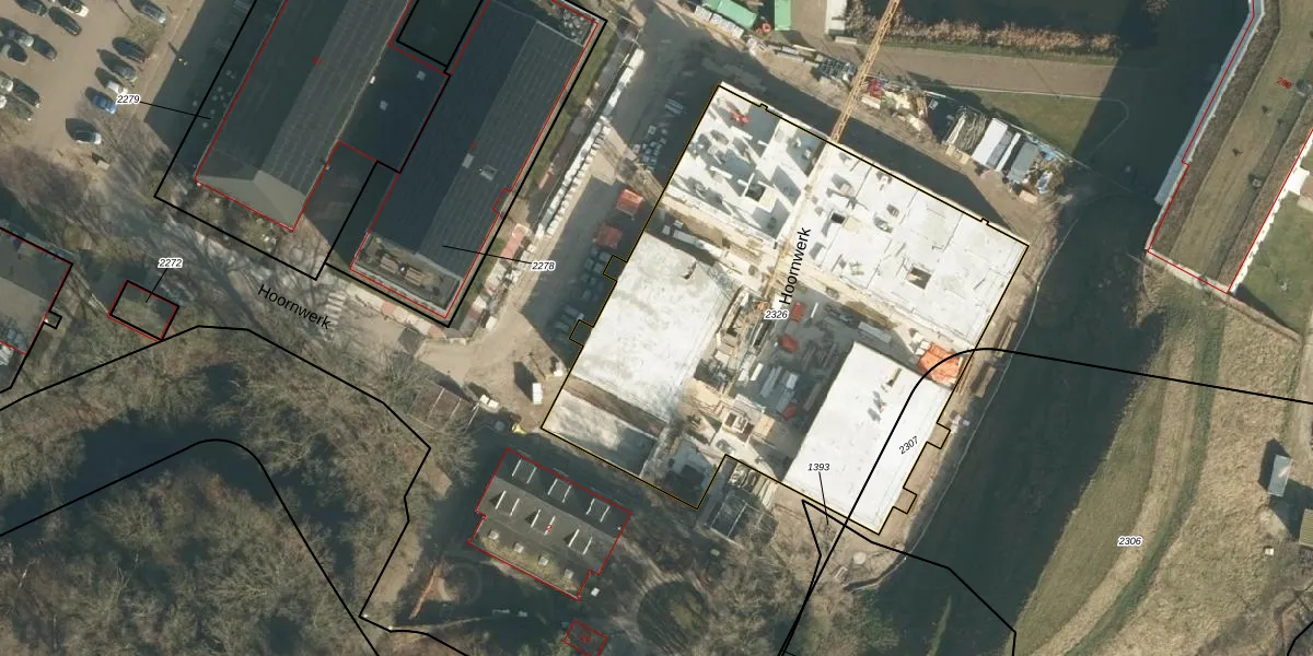 Het perceel waarop Hoornwerk 24 staat heeft een oppervlakte van 2746 m². Dit is een zeer groot perceel. De perceeloppervlakte wordt geregistreerd door het Kadaster. Gedetailleerde informatie over de maten van dit perceel kunt u vinden in het rapport Kadastrale kaart met maatvoering van Hoornwerk 24.