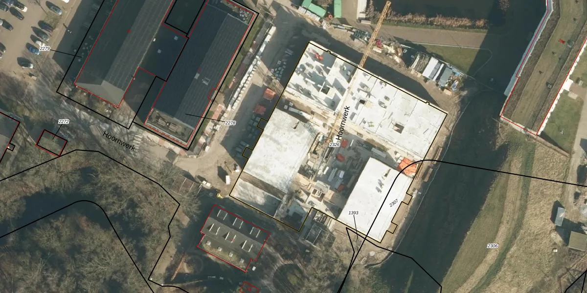 Het perceel waarop Hoornwerk 28 staat heeft een oppervlakte van 2746 m². Dit is een zeer groot perceel. De perceeloppervlakte wordt geregistreerd door het Kadaster. Gedetailleerde informatie over de maten van dit perceel kunt u vinden in het rapport Kadastrale kaart met maatvoering van Hoornwerk 28.