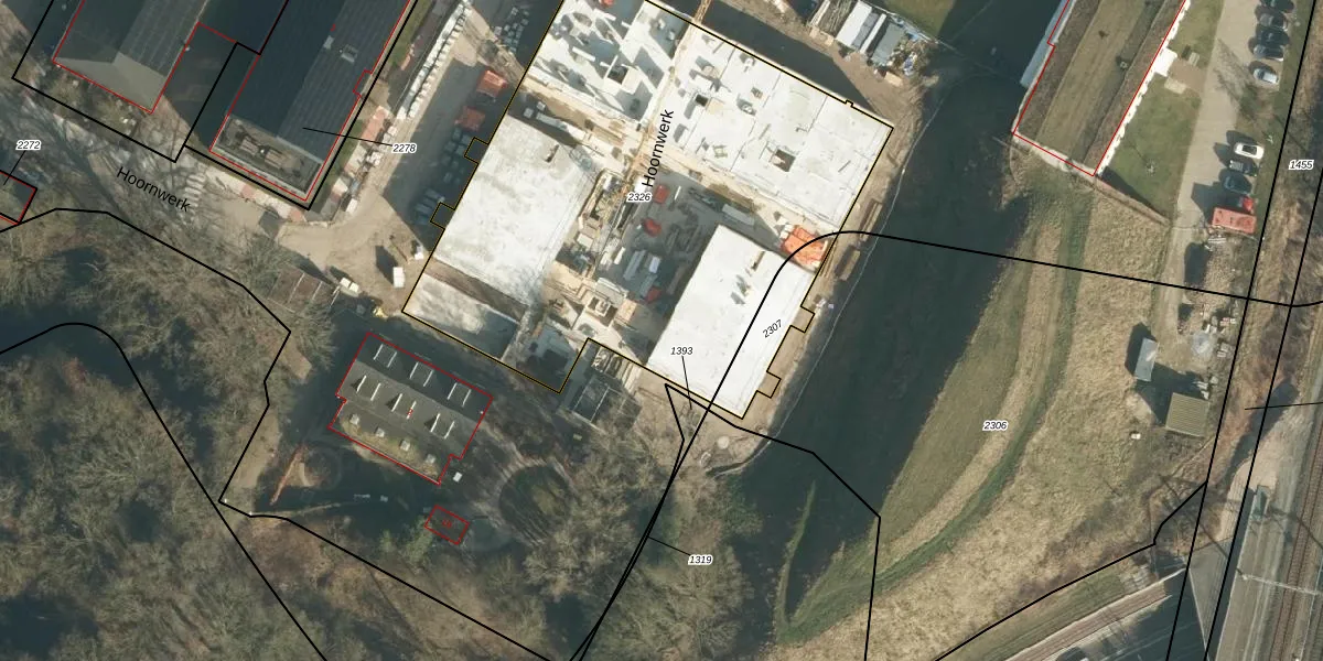 Het perceel waarop Hoornwerk 48 staat heeft een oppervlakte van 2746 m². Dit is een zeer groot perceel. De perceeloppervlakte wordt geregistreerd door het Kadaster. Gedetailleerde informatie over de maten van dit perceel kunt u vinden in het rapport Kadastrale kaart met maatvoering van Hoornwerk 48.