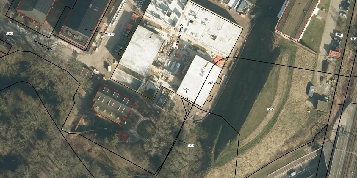 Het perceel waarop Hoornwerk 50 staat heeft een oppervlakte van 2746 m². Dit is een zeer groot perceel. De perceeloppervlakte wordt geregistreerd door het Kadaster. Gedetailleerde informatie over de maten van dit perceel kunt u vinden in het rapport Kadastrale kaart met maatvoering van Hoornwerk 50.