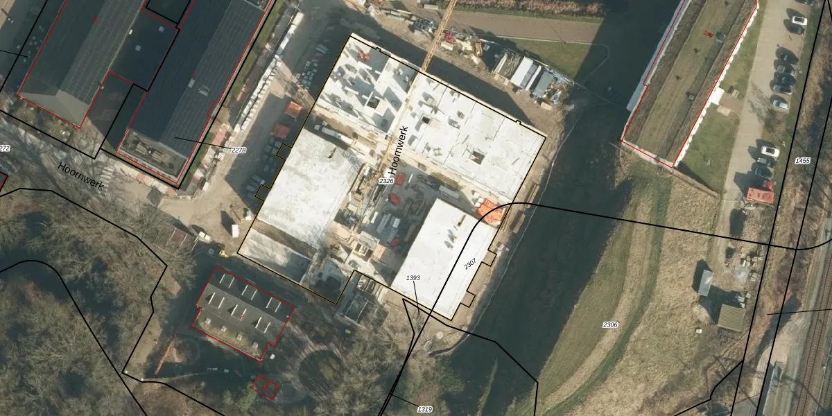 Het perceel waarop Hoornwerk 68 staat heeft een oppervlakte van 2746 m². Dit is een zeer groot perceel. De perceeloppervlakte wordt geregistreerd door het Kadaster. Gedetailleerde informatie over de maten van dit perceel kunt u vinden in het rapport Kadastrale kaart met maatvoering van Hoornwerk 68.