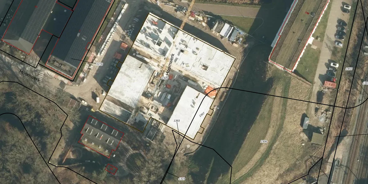 Het perceel waarop Hoornwerk 74 staat heeft een oppervlakte van 2746 m². Dit is een zeer groot perceel. De perceeloppervlakte wordt geregistreerd door het Kadaster. Gedetailleerde informatie over de maten van dit perceel kunt u vinden in het rapport Kadastrale kaart met maatvoering van Hoornwerk 74.