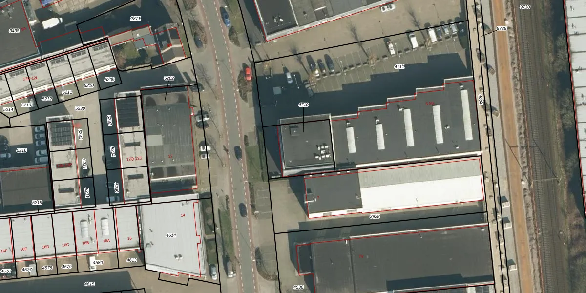 Het perceel waarop Industrieweg 5-C staat heeft een oppervlakte van 410 m². Dit is een groot perceel. De perceeloppervlakte wordt geregistreerd door het Kadaster. Gedetailleerde informatie over de maten van dit perceel kunt u vinden in het rapport Kadastrale kaart met maatvoering van Industrieweg 5-C.