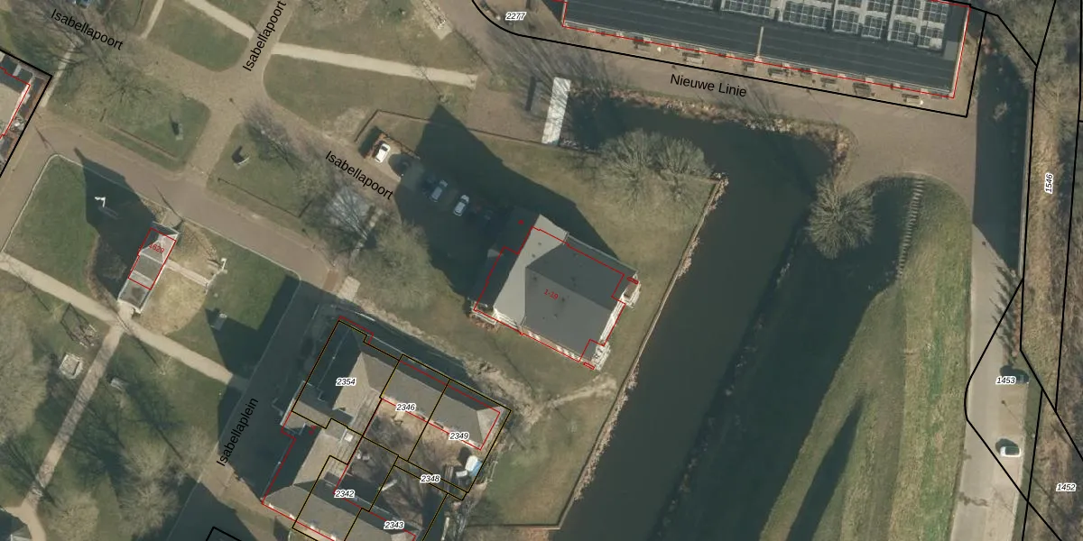 Het perceel waarop Isabellapoort 15 staat heeft een oppervlakte van 7,1 ha. Dit is een zeer groot perceel. De perceeloppervlakte wordt geregistreerd door het Kadaster. Gedetailleerde informatie over de maten van dit perceel kunt u vinden in het rapport Kadastrale kaart met maatvoering van Isabellapoort 15.