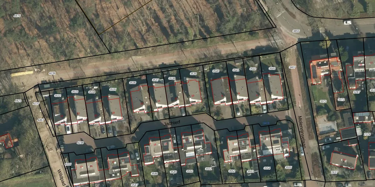 Het perceel waarop Jachterf 10 staat heeft een oppervlakte van 324 m². Dit is een groot perceel. De perceeloppervlakte wordt geregistreerd door het Kadaster. Gedetailleerde informatie over de maten van dit perceel kunt u vinden in het rapport Kadastrale kaart met maatvoering van Jachterf 10.