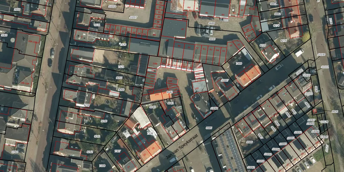 Jan van Speykstraat 14-Y is gelegen op kadastraal perceel VUG00B9042. Deze kadastrale aanduiding is uniek en wordt gebruikt door het Kadaster om eigendomsrechten en andere zakelijke rechten vast te leggen. Het perceel maakt onderdeel uit van de kadastrale gemeente Vught.