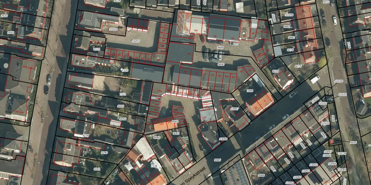 Jan van Speykstraat 14-G is gelegen op kadastraal perceel VUG00B9042. Deze kadastrale aanduiding is uniek en wordt gebruikt door het Kadaster om eigendomsrechten en andere zakelijke rechten vast te leggen. Het perceel maakt onderdeel uit van de kadastrale gemeente Vught.
