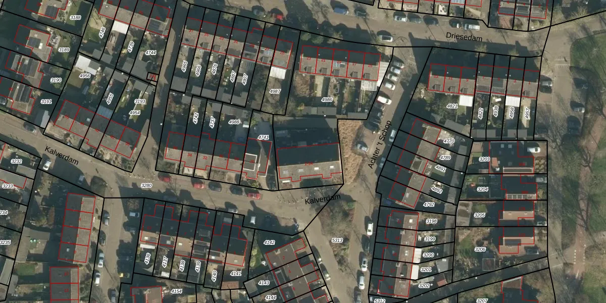 Het perceel waarop Kalverdam 18 staat heeft een oppervlakte van 1275 m². Dit is een zeer groot perceel. De perceeloppervlakte wordt geregistreerd door het Kadaster. Gedetailleerde informatie over de maten van dit perceel kunt u vinden in het rapport Kadastrale kaart met maatvoering van Kalverdam 18.