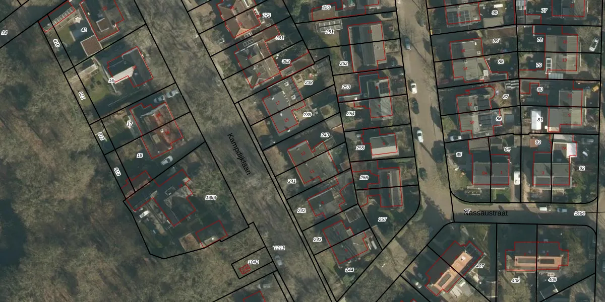 Het perceel waarop Kampdijklaan 13 staat heeft een oppervlakte van 253 m². Dit is een middelgroot perceel. De perceeloppervlakte wordt geregistreerd door het Kadaster. Gedetailleerde informatie over de maten van dit perceel kunt u vinden in het rapport Kadastrale kaart met maatvoering van Kampdijklaan 13.
