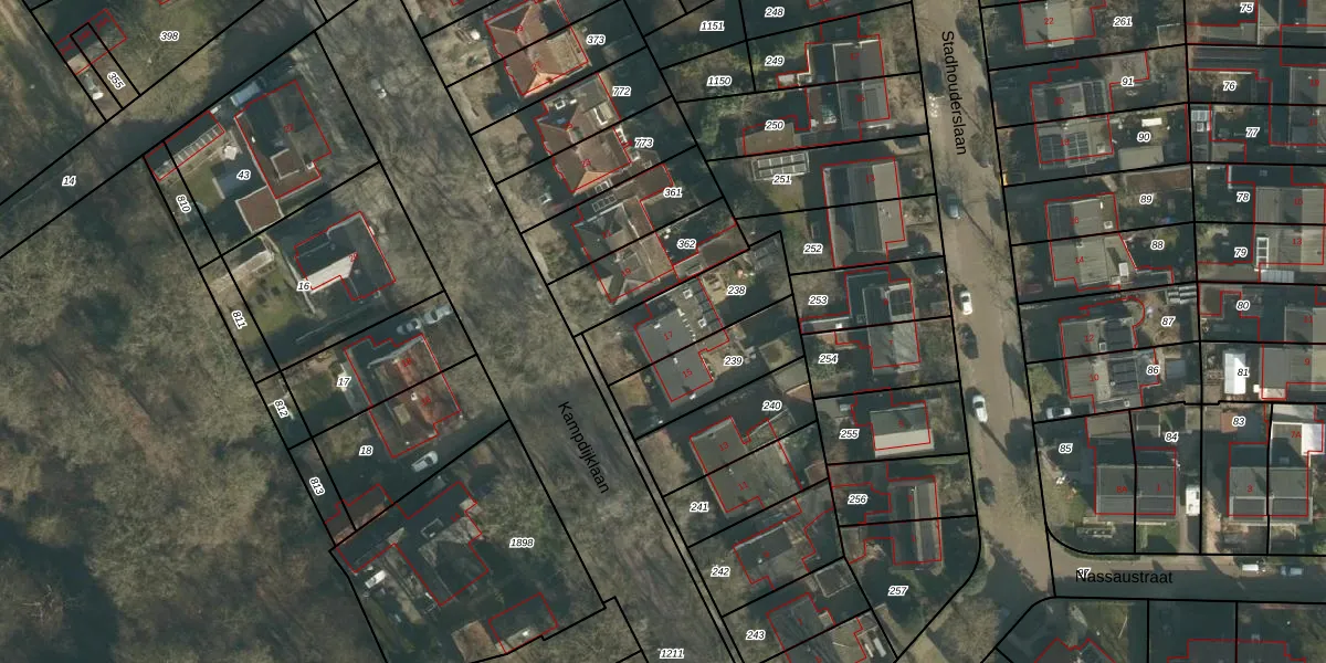 Het perceel waarop Kampdijklaan 17 staat heeft een oppervlakte van 297 m². Dit is een middelgroot perceel. De perceeloppervlakte wordt geregistreerd door het Kadaster. Gedetailleerde informatie over de maten van dit perceel kunt u vinden in het rapport Kadastrale kaart met maatvoering van Kampdijklaan 17.