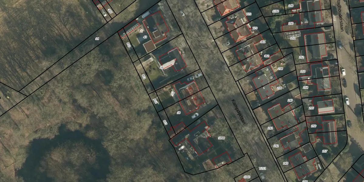 Kampdijklaan 18 is gelegen op kadastraal perceel VUG00K17. Deze kadastrale aanduiding is uniek en wordt gebruikt door het Kadaster om eigendomsrechten en andere zakelijke rechten vast te leggen. Het perceel maakt onderdeel uit van de kadastrale gemeente Vught.