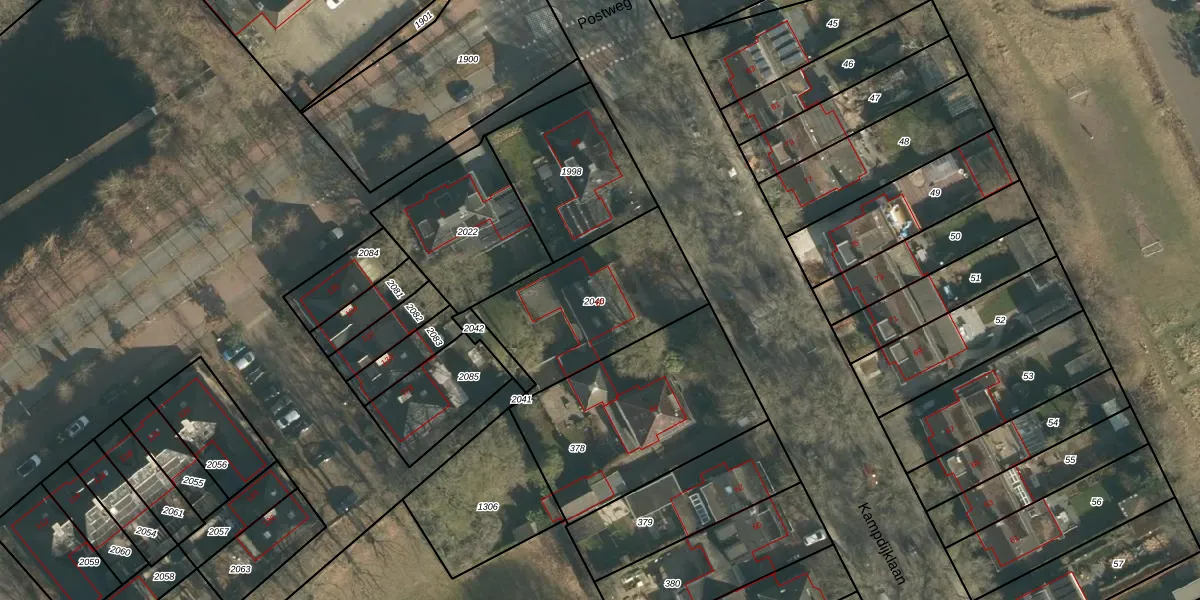 Het perceel waarop Kampdijklaan 66 staat heeft een oppervlakte van 608 m². Dit is een groot perceel. De perceeloppervlakte wordt geregistreerd door het Kadaster. Gedetailleerde informatie over de maten van dit perceel kunt u vinden in het rapport Kadastrale kaart met maatvoering van Kampdijklaan 66.