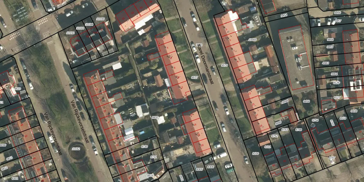 Karel Doormanstraat 12 is gelegen op kadastraal perceel VUG00B9932. Deze kadastrale aanduiding is uniek en wordt gebruikt door het Kadaster om eigendomsrechten en andere zakelijke rechten vast te leggen. Het perceel maakt onderdeel uit van de kadastrale gemeente Vught.