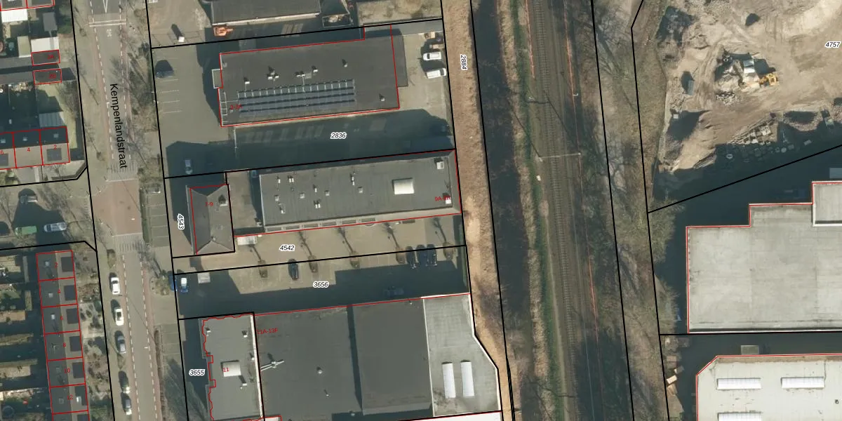 Het perceel waarop Kempenlandstraat 9-D staat heeft een oppervlakte van 1318 m². Dit is een zeer groot perceel. De perceeloppervlakte wordt geregistreerd door het Kadaster. Gedetailleerde informatie over de maten van dit perceel kunt u vinden in het rapport Kadastrale kaart met maatvoering van Kempenlandstraat 9-D.