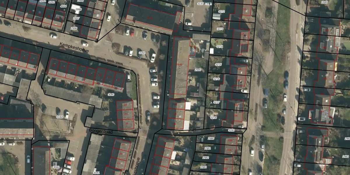 Het perceel waarop Kempkeshoeve 24 staat heeft een oppervlakte van 1985 m². Dit is een zeer groot perceel. De perceeloppervlakte wordt geregistreerd door het Kadaster. Gedetailleerde informatie over de maten van dit perceel kunt u vinden in het rapport Kadastrale kaart met maatvoering van Kempkeshoeve 24.