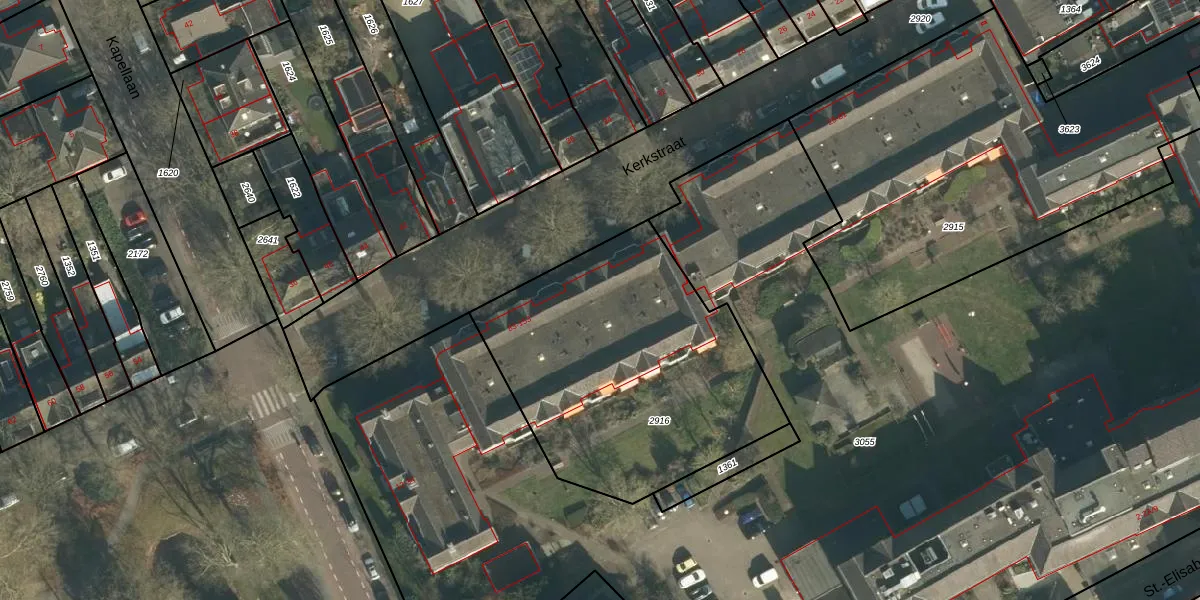 Het perceel waarop Kerkstraat 101 staat heeft een oppervlakte van 1466 m². Dit is een zeer groot perceel. De perceeloppervlakte wordt geregistreerd door het Kadaster. Gedetailleerde informatie over de maten van dit perceel kunt u vinden in het rapport Kadastrale kaart met maatvoering van Kerkstraat 101.