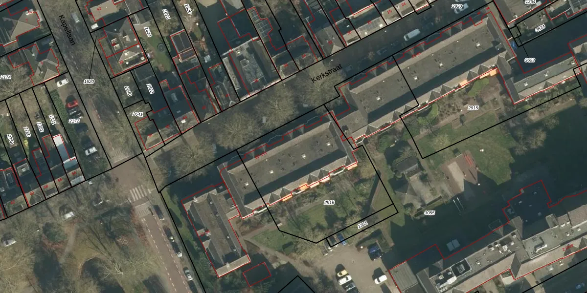 Kerkstraat 105 is gelegen op kadastraal perceel VUG00L2916. Deze kadastrale aanduiding is uniek en wordt gebruikt door het Kadaster om eigendomsrechten en andere zakelijke rechten vast te leggen. Het perceel maakt onderdeel uit van de kadastrale gemeente Vught.