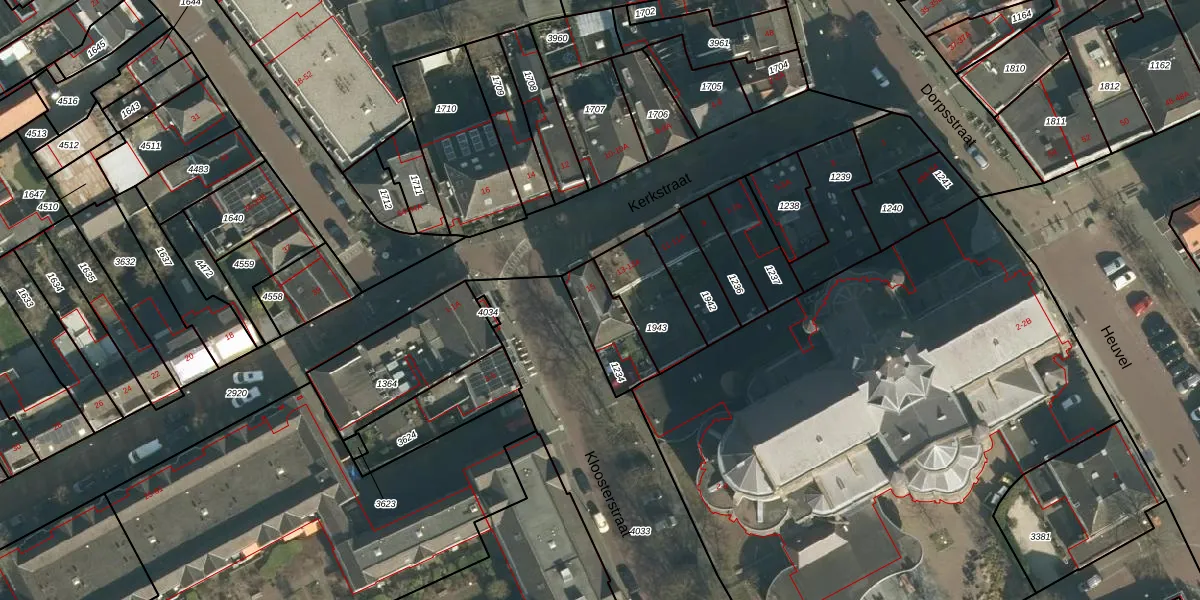 Kerkstraat 15 is gelegen op kadastraal perceel VUG00L1234. Deze kadastrale aanduiding is uniek en wordt gebruikt door het Kadaster om eigendomsrechten en andere zakelijke rechten vast te leggen. Het perceel maakt onderdeel uit van de kadastrale gemeente Vught.