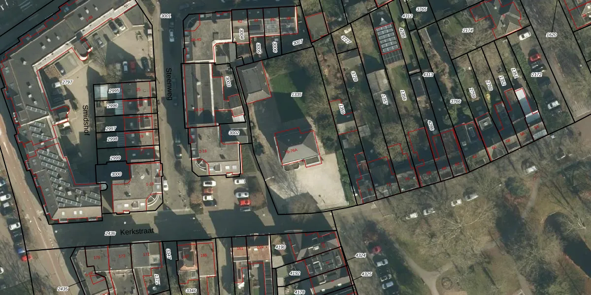 Kerkstraat 76 is gelegen op kadastraal perceel VUG00L1335. Deze kadastrale aanduiding is uniek en wordt gebruikt door het Kadaster om eigendomsrechten en andere zakelijke rechten vast te leggen. Het perceel maakt onderdeel uit van de kadastrale gemeente Vught.