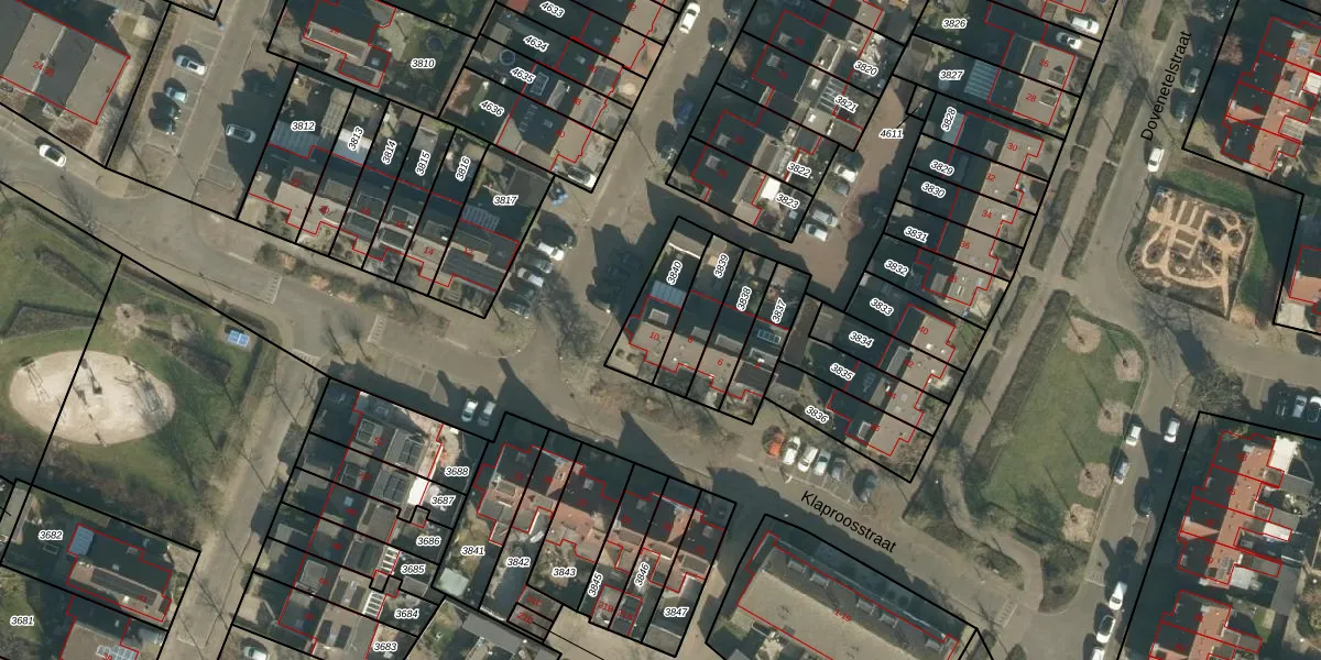 Klaproosstraat 10 is gelegen op kadastraal perceel VUG00D3840. Deze kadastrale aanduiding is uniek en wordt gebruikt door het Kadaster om eigendomsrechten en andere zakelijke rechten vast te leggen. Het perceel maakt onderdeel uit van de kadastrale gemeente Vught.