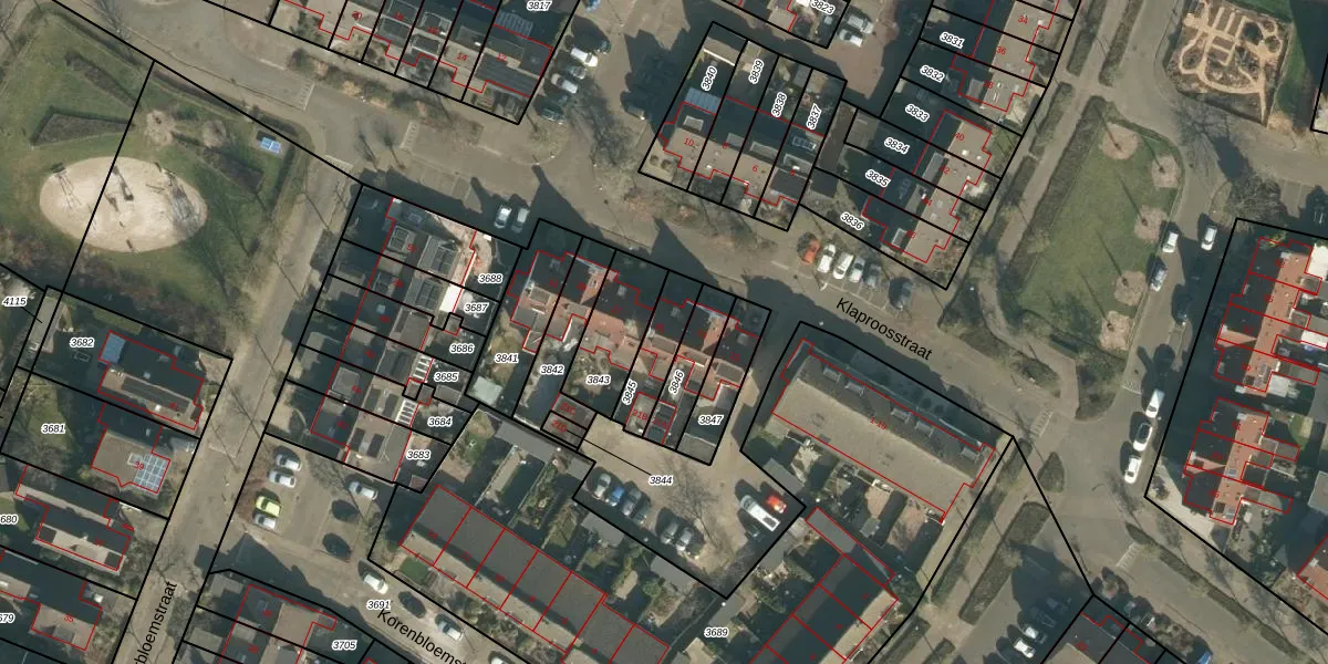 Klaproosstraat 25 is gelegen op kadastraal perceel VUG00D3845. Deze kadastrale aanduiding is uniek en wordt gebruikt door het Kadaster om eigendomsrechten en andere zakelijke rechten vast te leggen. Het perceel maakt onderdeel uit van de kadastrale gemeente Vught.