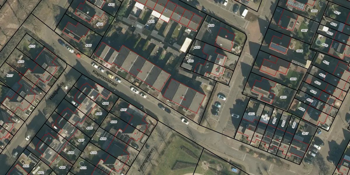 Klaproosstraat 38 is gelegen op kadastraal perceel VUG00D4061. Deze kadastrale aanduiding is uniek en wordt gebruikt door het Kadaster om eigendomsrechten en andere zakelijke rechten vast te leggen. Het perceel maakt onderdeel uit van de kadastrale gemeente Vught.