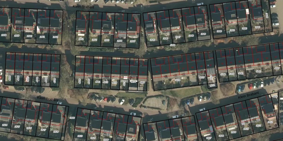 Gebruik de zoekbalk of klik op een perceel voor informatie over de adressen binnen dit perceel.