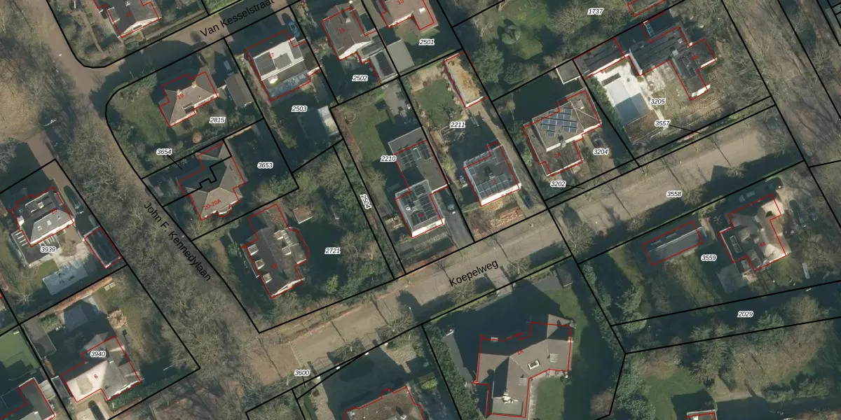 Gebruik de zoekbalk of klik op een perceel voor informatie over de adressen binnen dit perceel.