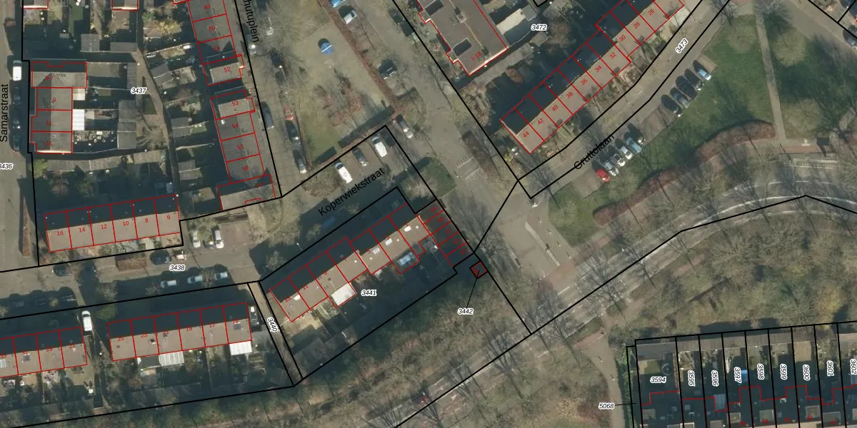 Het perceel waarop Koperwiekstraat 1-A staat heeft een oppervlakte van 1107 m². Dit is een zeer groot perceel. De perceeloppervlakte wordt geregistreerd door het Kadaster. Gedetailleerde informatie over de maten van dit perceel kunt u vinden in het rapport Kadastrale kaart met maatvoering van Koperwiekstraat 1-A.