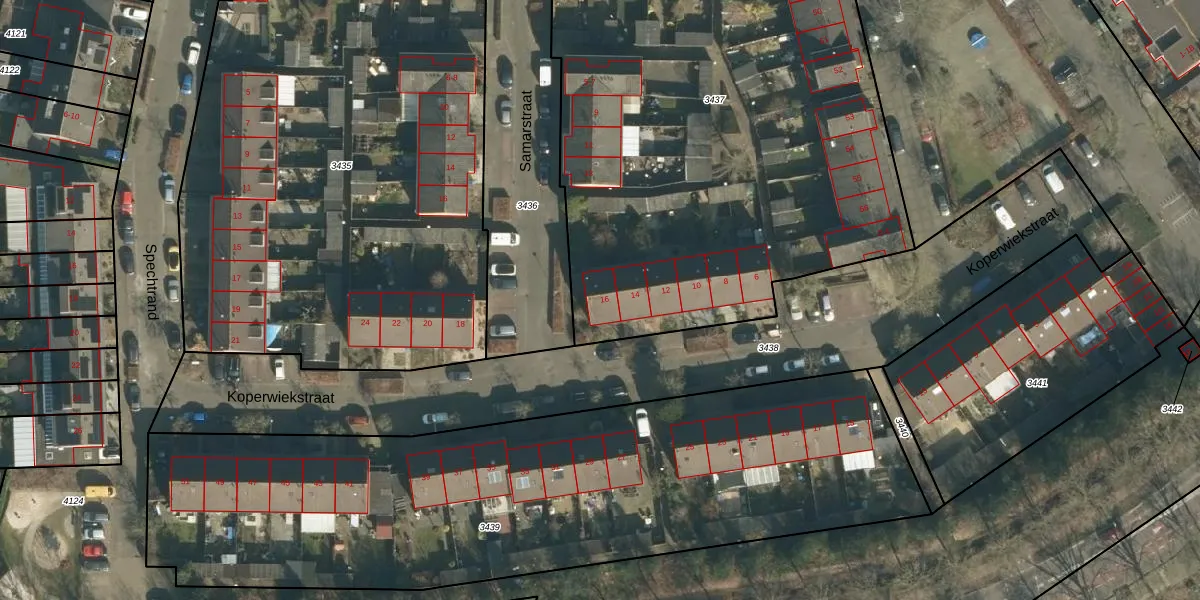 Het perceel waarop Koperwiekstraat 16 staat heeft een oppervlakte van 3416 m². Dit is een zeer groot perceel. De perceeloppervlakte wordt geregistreerd door het Kadaster. Gedetailleerde informatie over de maten van dit perceel kunt u vinden in het rapport Kadastrale kaart met maatvoering van Koperwiekstraat 16.