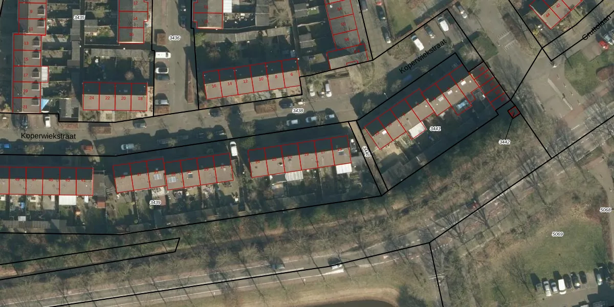 Het perceel waarop Koperwiekstraat 19 staat heeft een oppervlakte van 3208 m². Dit is een zeer groot perceel. De perceeloppervlakte wordt geregistreerd door het Kadaster. Gedetailleerde informatie over de maten van dit perceel kunt u vinden in het rapport Kadastrale kaart met maatvoering van Koperwiekstraat 19.