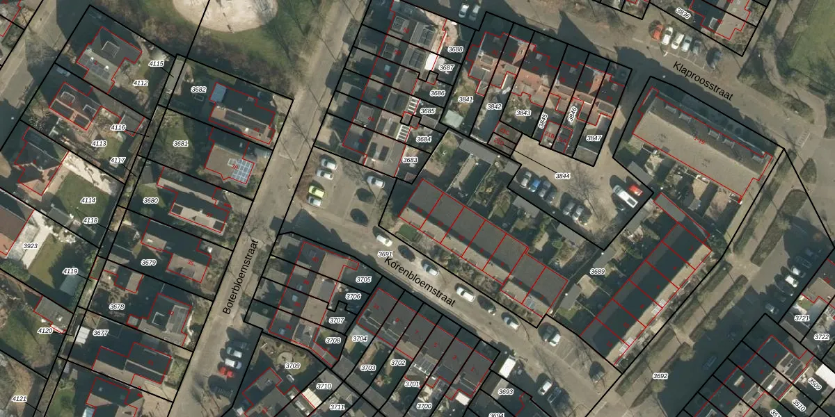 Het perceel waarop Korenbloemstraat 14 staat heeft een oppervlakte van 3017 m². Dit is een zeer groot perceel. De perceeloppervlakte wordt geregistreerd door het Kadaster. Gedetailleerde informatie over de maten van dit perceel kunt u vinden in het rapport Kadastrale kaart met maatvoering van Korenbloemstraat 14.
