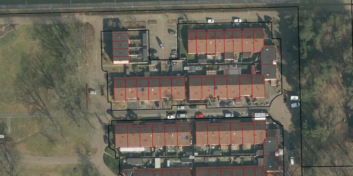 Het perceel waarop Kota Inten 14 staat heeft een oppervlakte van 4291 m². Dit is een zeer groot perceel. De perceeloppervlakte wordt geregistreerd door het Kadaster. Gedetailleerde informatie over de maten van dit perceel kunt u vinden in het rapport Kadastrale kaart met maatvoering van Kota Inten 14.