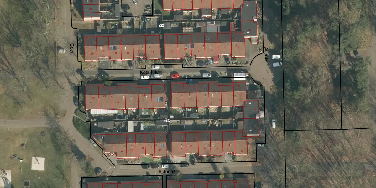 Het perceel waarop Kota Inten 9 staat heeft een oppervlakte van 4109 m². Dit is een zeer groot perceel. De perceeloppervlakte wordt geregistreerd door het Kadaster. Gedetailleerde informatie over de maten van dit perceel kunt u vinden in het rapport Kadastrale kaart met maatvoering van Kota Inten 9.